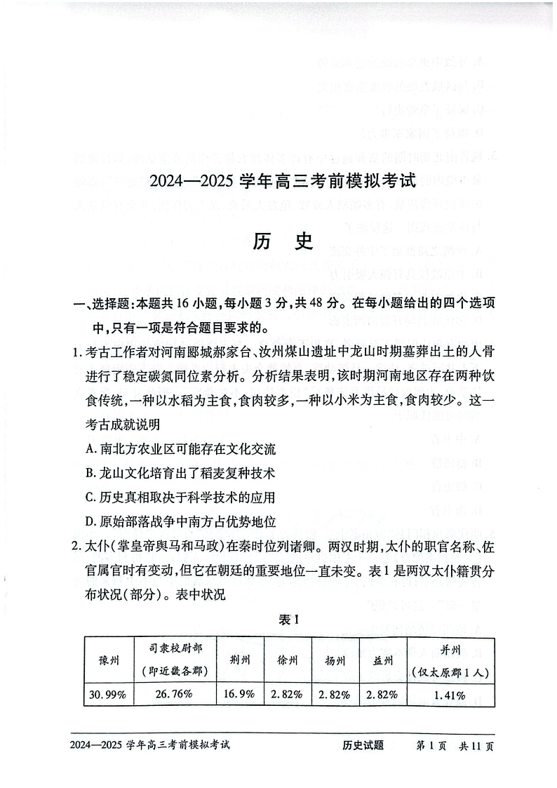 河南省天一大联考2025届高三考前模拟预测历史