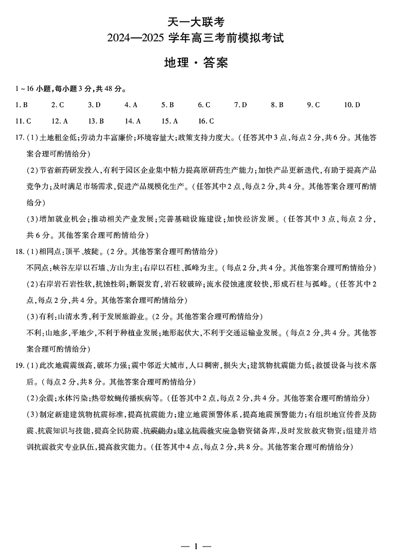河南省天一大联考2025届高三考前模拟预测地理答案