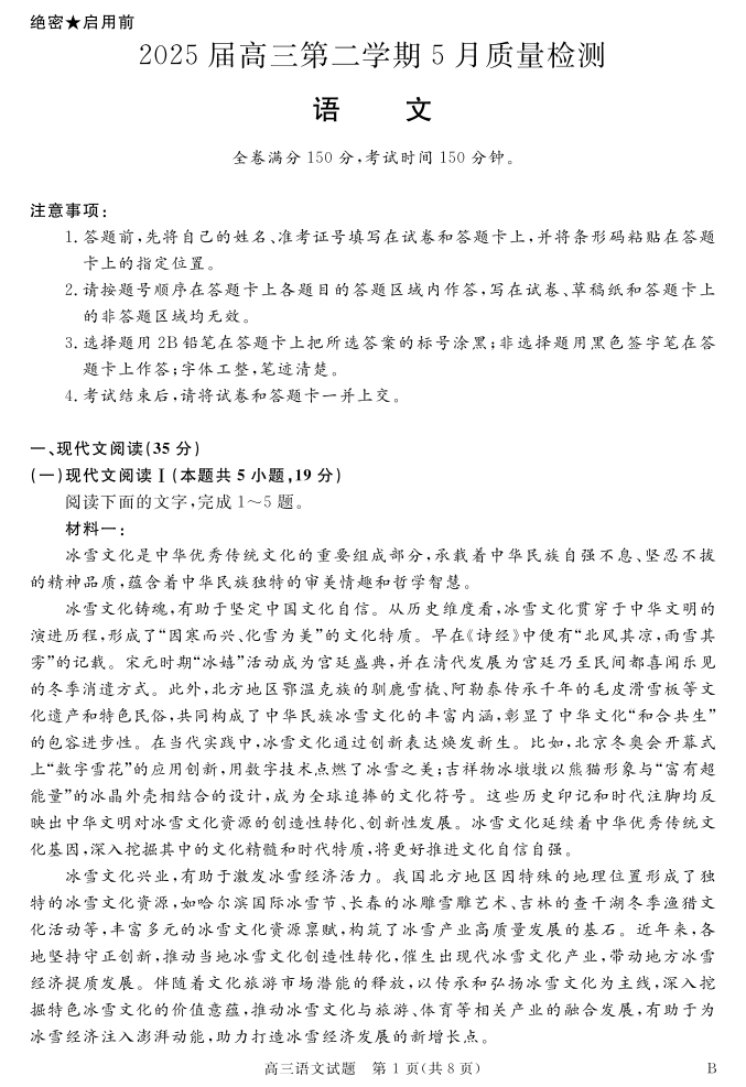 安徽省华师联盟2025届高三第二学期5月质量检测语文