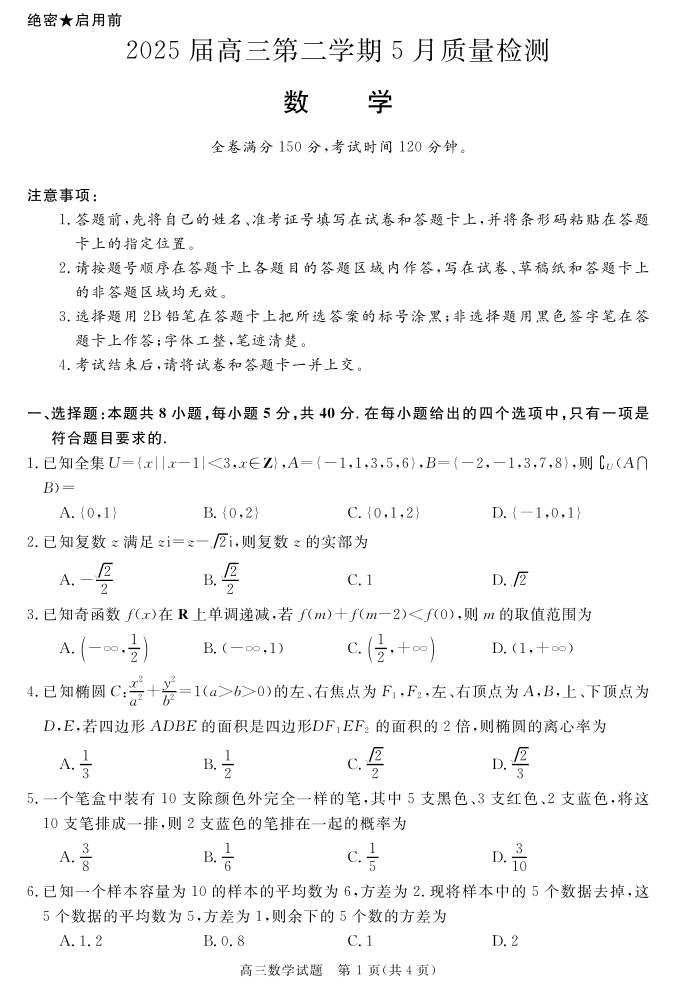 安徽省华师联盟2025届高三第二学期5月质量检测数学