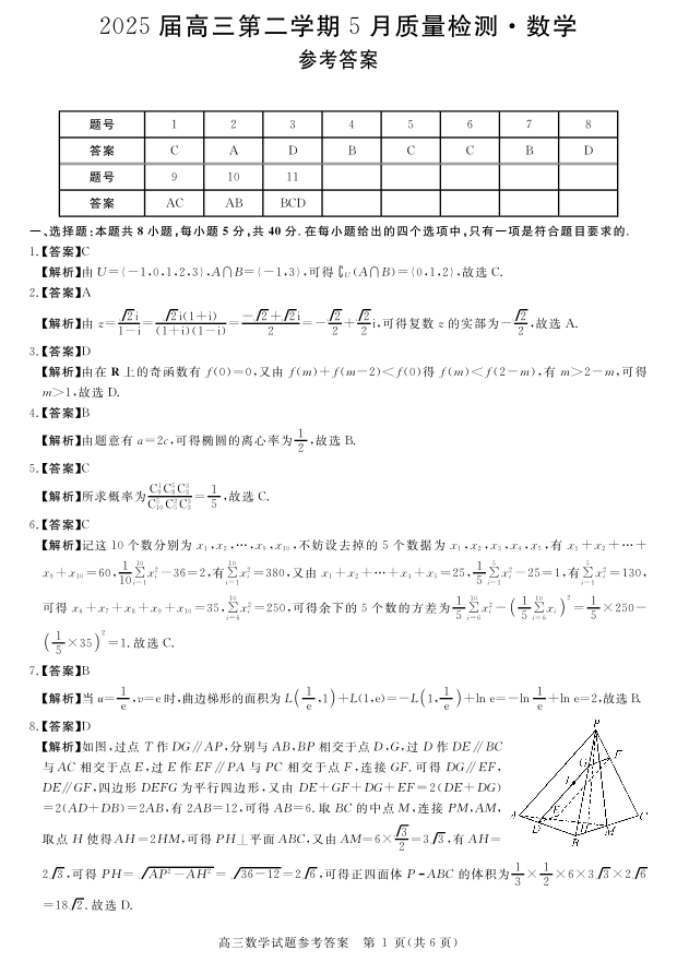 安徽省华师联盟2025届高三第二学期5月质量检测数学答案