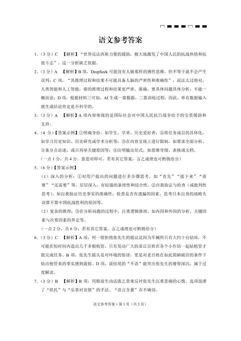 重庆巴蜀中学2025届高考适应性卷(九)语文答案