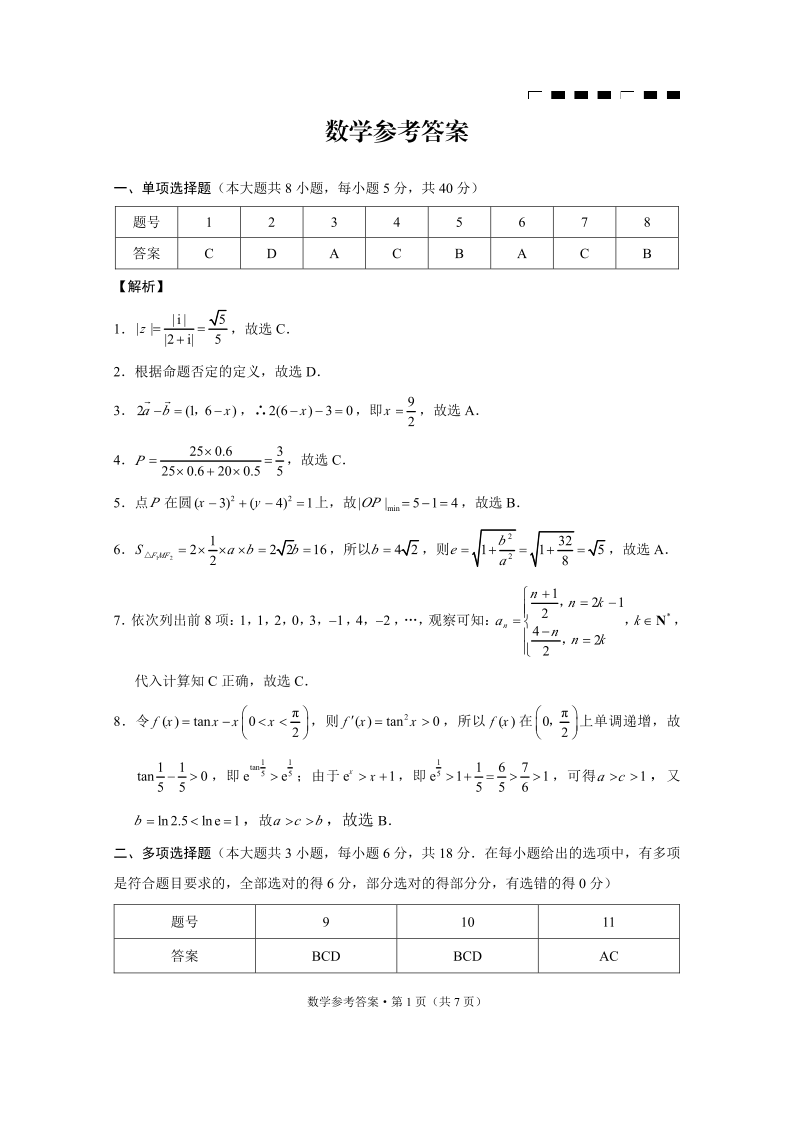 重庆巴蜀中学2025届高考适应性卷(九)数学答案