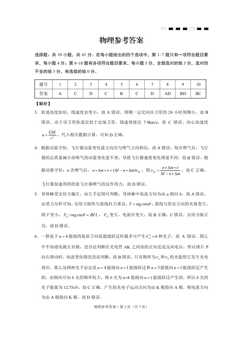 重庆巴蜀中学2025届高考适应性卷(九)物理答案