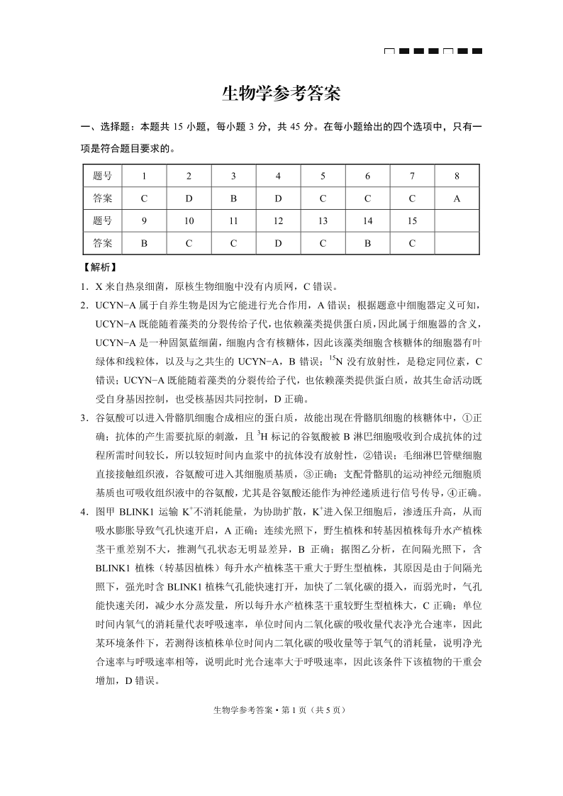 重庆巴蜀中学2025届高考适应性卷(九)生物答案
