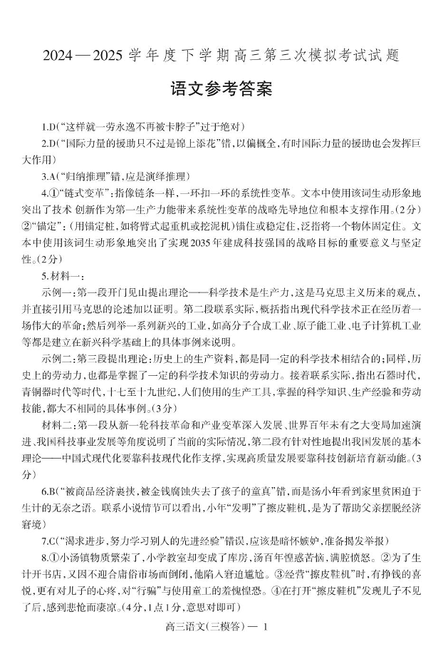 辽宁省辽南协作体2025届高三下学期第三次模拟语文答案