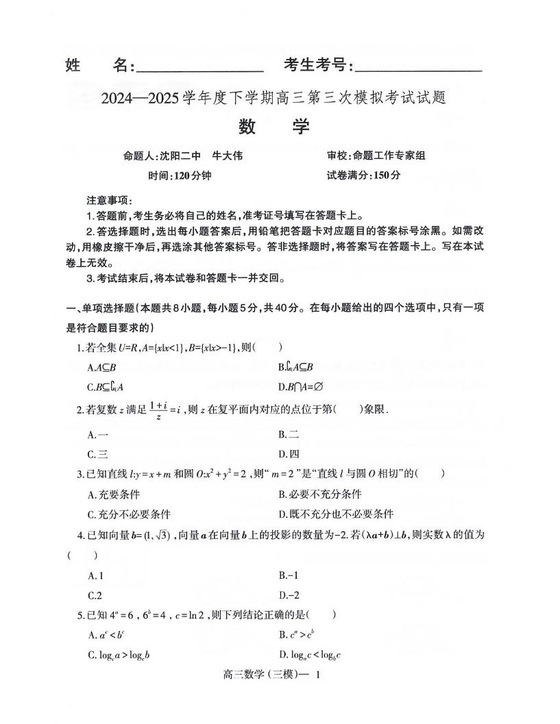 辽宁省辽南协作体2025届高三下学期第三次模拟数学