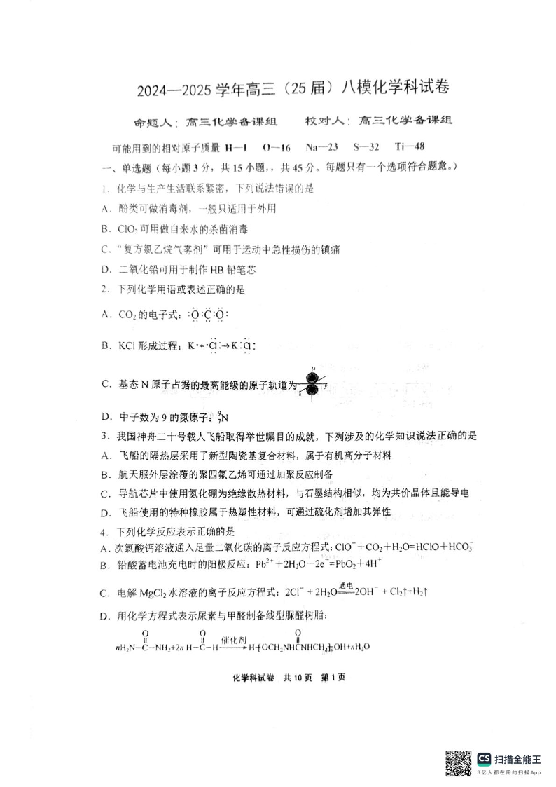 辽宁省鞍山市第一中学2025届高三下学期八模考试化学