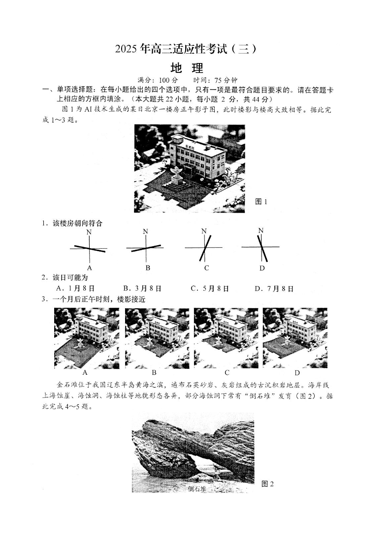 江苏省南通市如皋市2025届高三下学期高考适应性考试(三)地理+答案