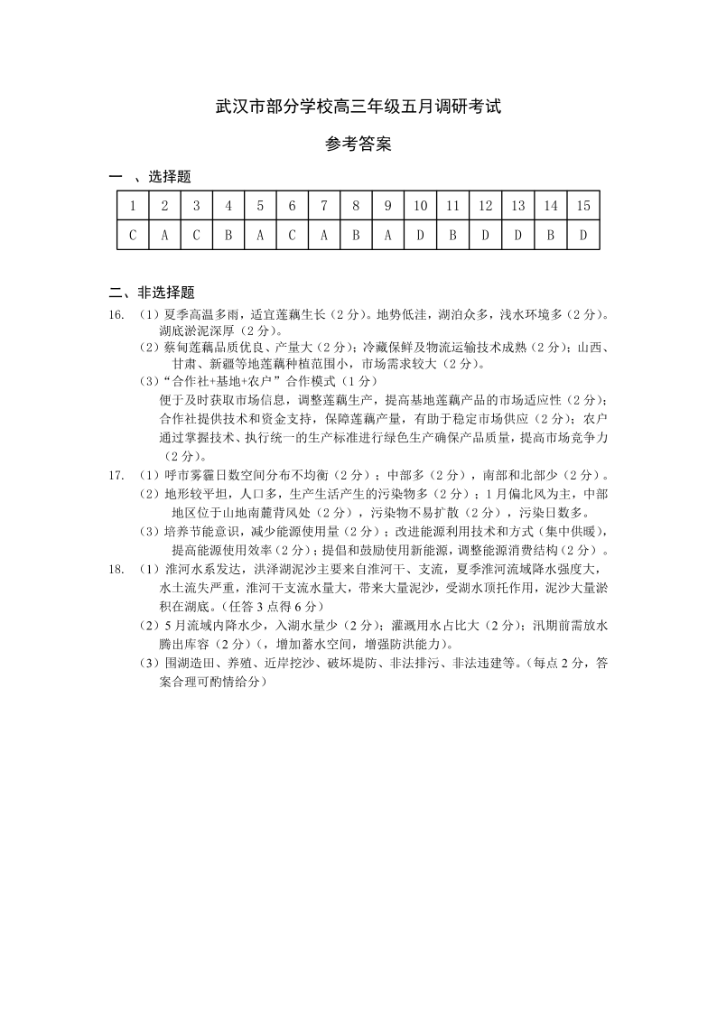 湖北省武汉市2025届高三五月模拟训练地理答案