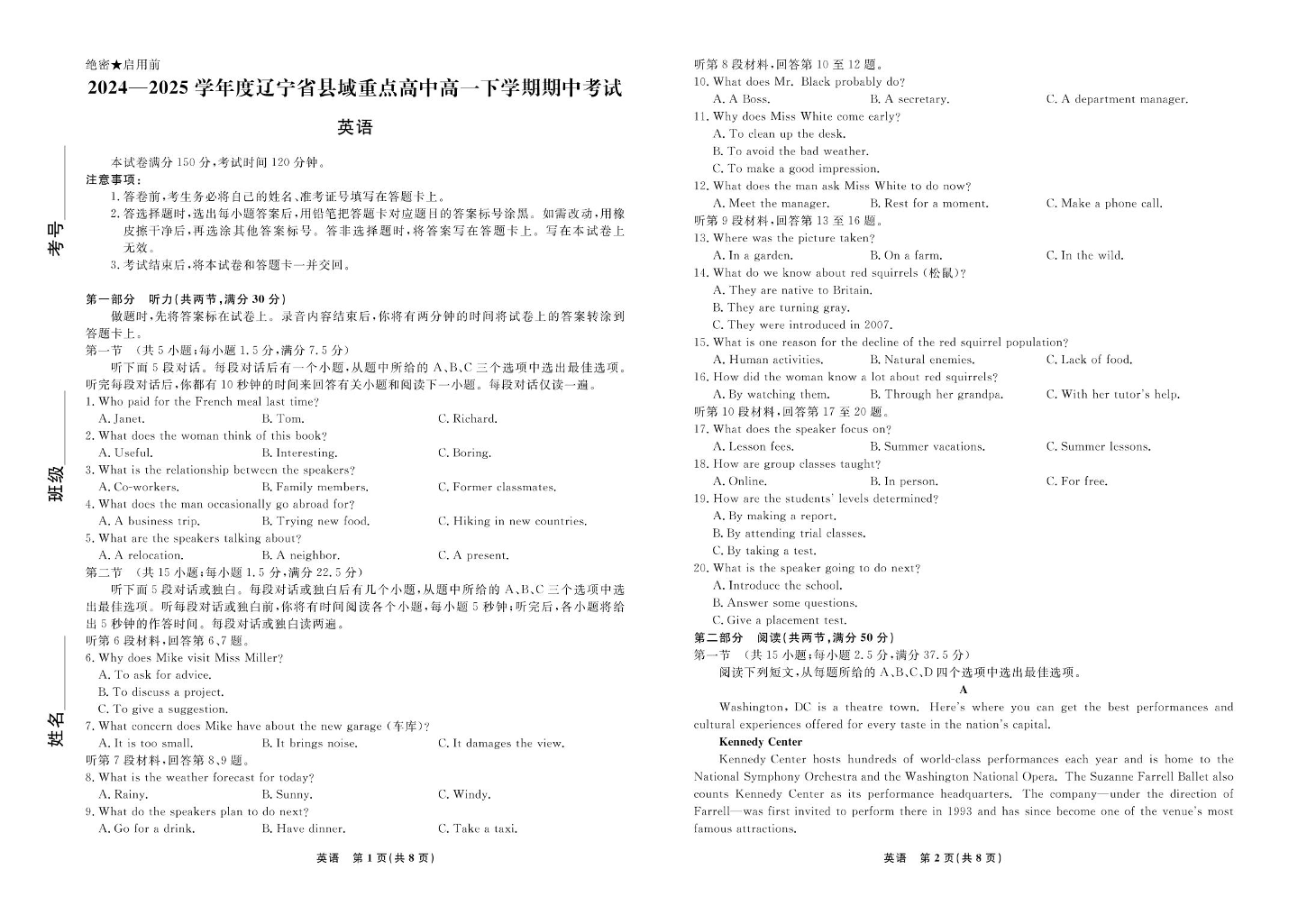 辽宁省县域重点高中2024-2025学年下学期高一期中考试英语+答案
