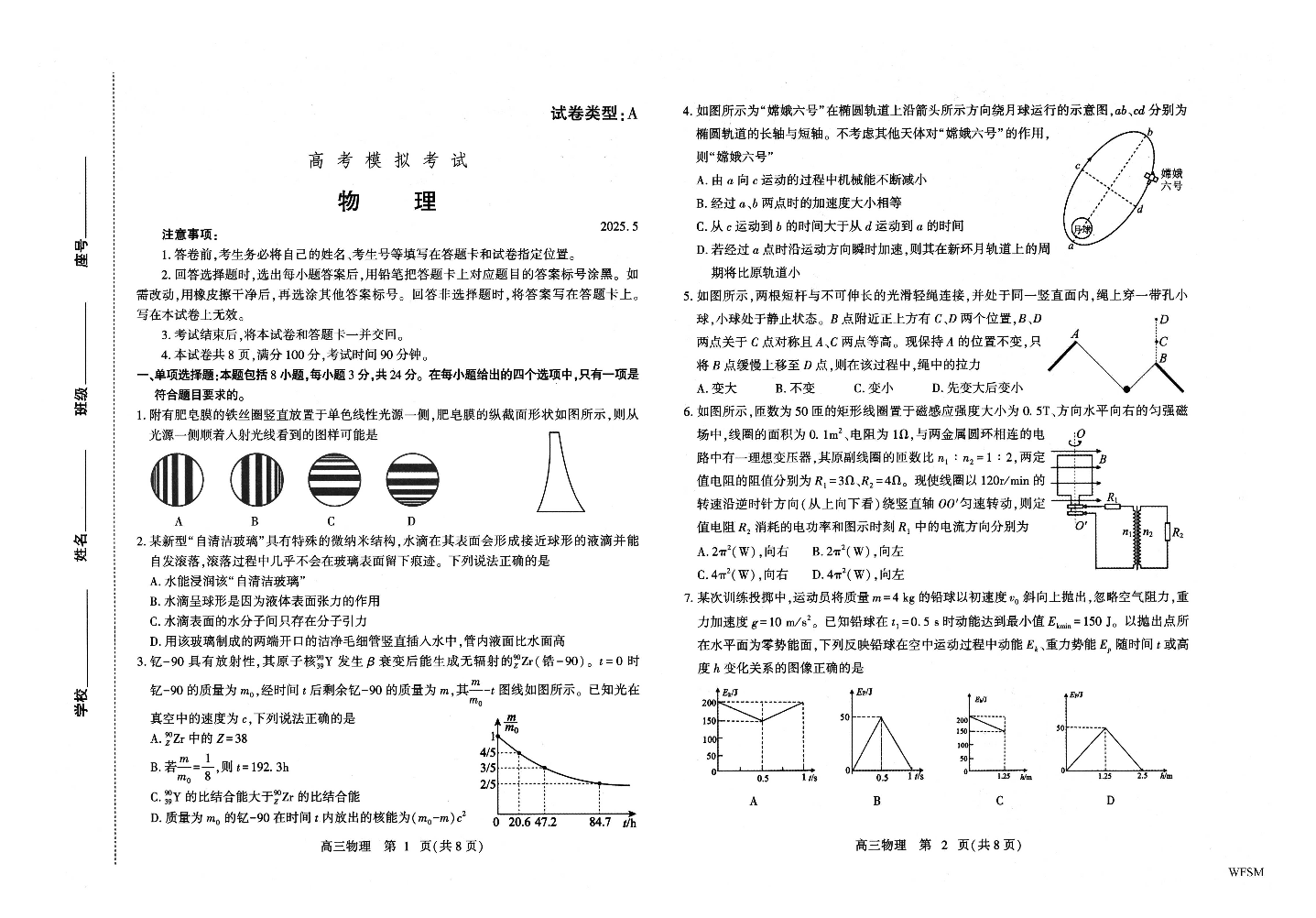 山东省潍坊市2024-2025学年下学期5月高三三模考试物理