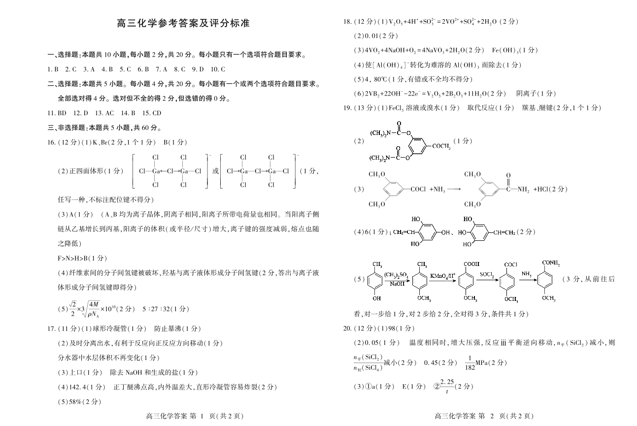 山东省潍坊市2024-2025学年下学期5月高三三模考试化学答案