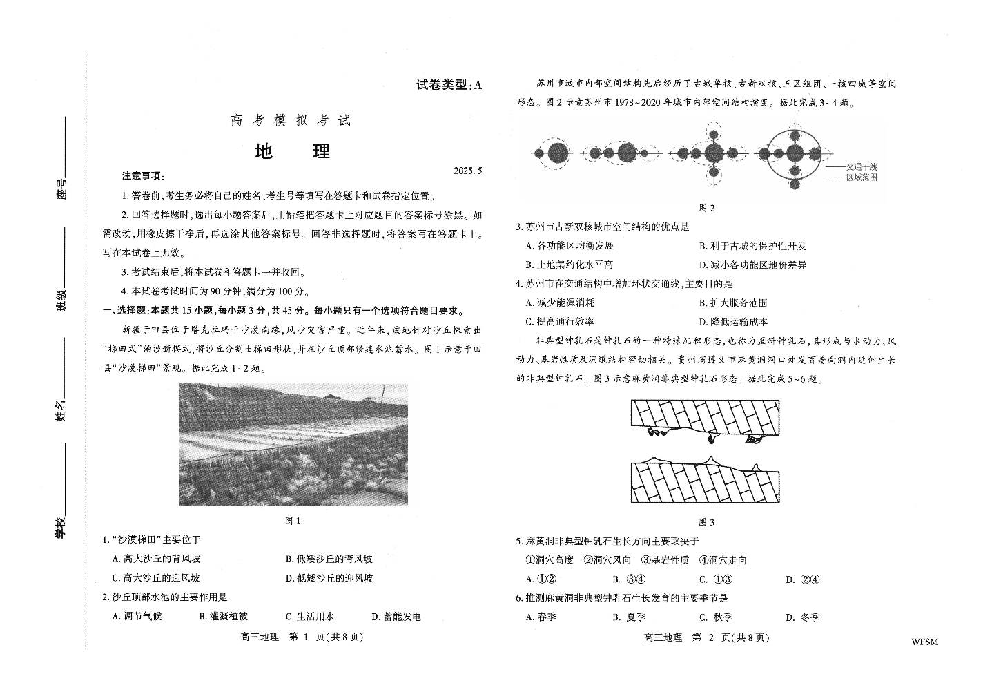 山东省潍坊市2024-2025学年下学期5月高三三模考试地理