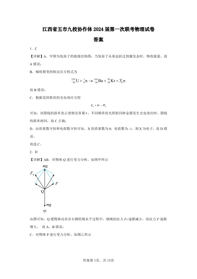 江西省五市九校协作体2024届高三上学期第一次联考物理答案