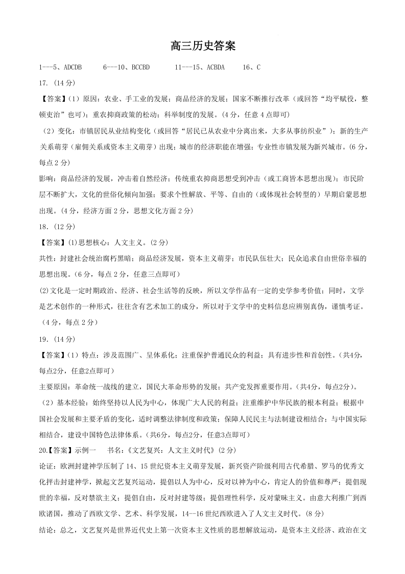 辽宁省鞍山市普通高中2024届高三上学期期末联考历史答案