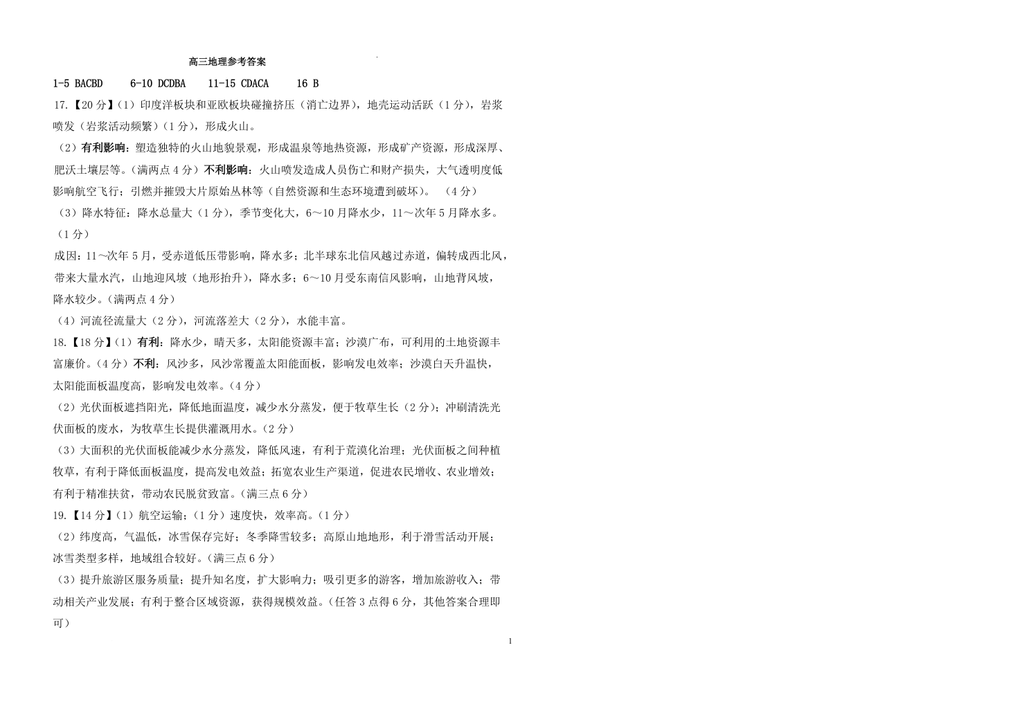 辽宁省鞍山市普通高中2024届高三上学期期末联考地理答案