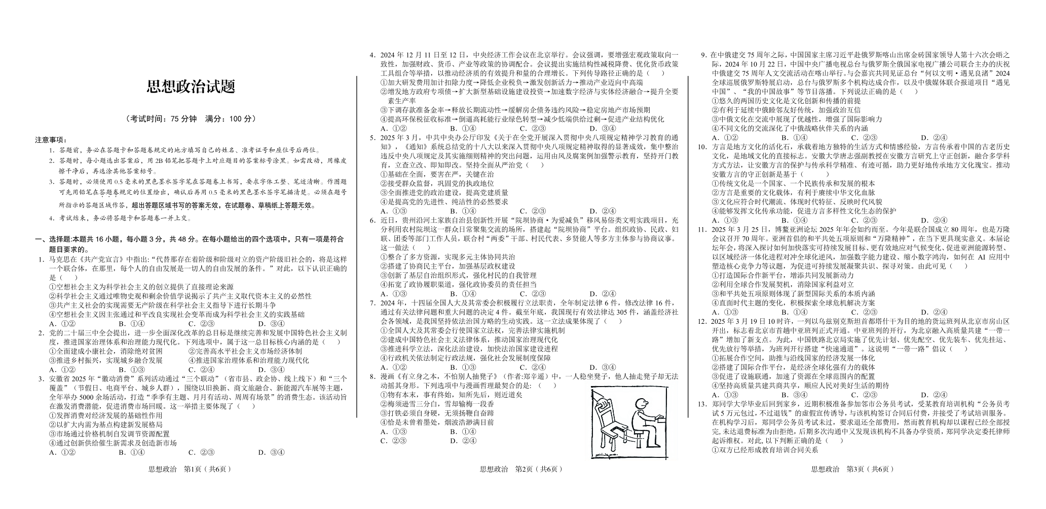 安徽省合肥市一中2025届高三下学期最后一卷政治
