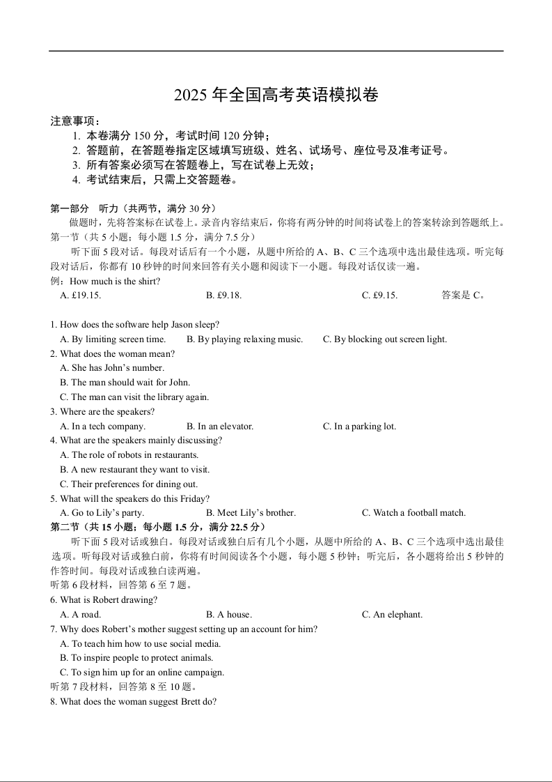 浙江省六所名校联盟2025届高三5月模拟预测卷英语