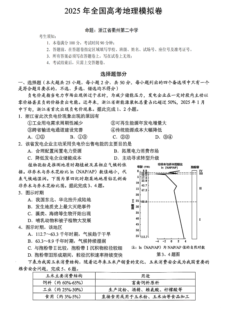 浙江省六所名校联盟2025届高三5月模拟预测卷地理+答案