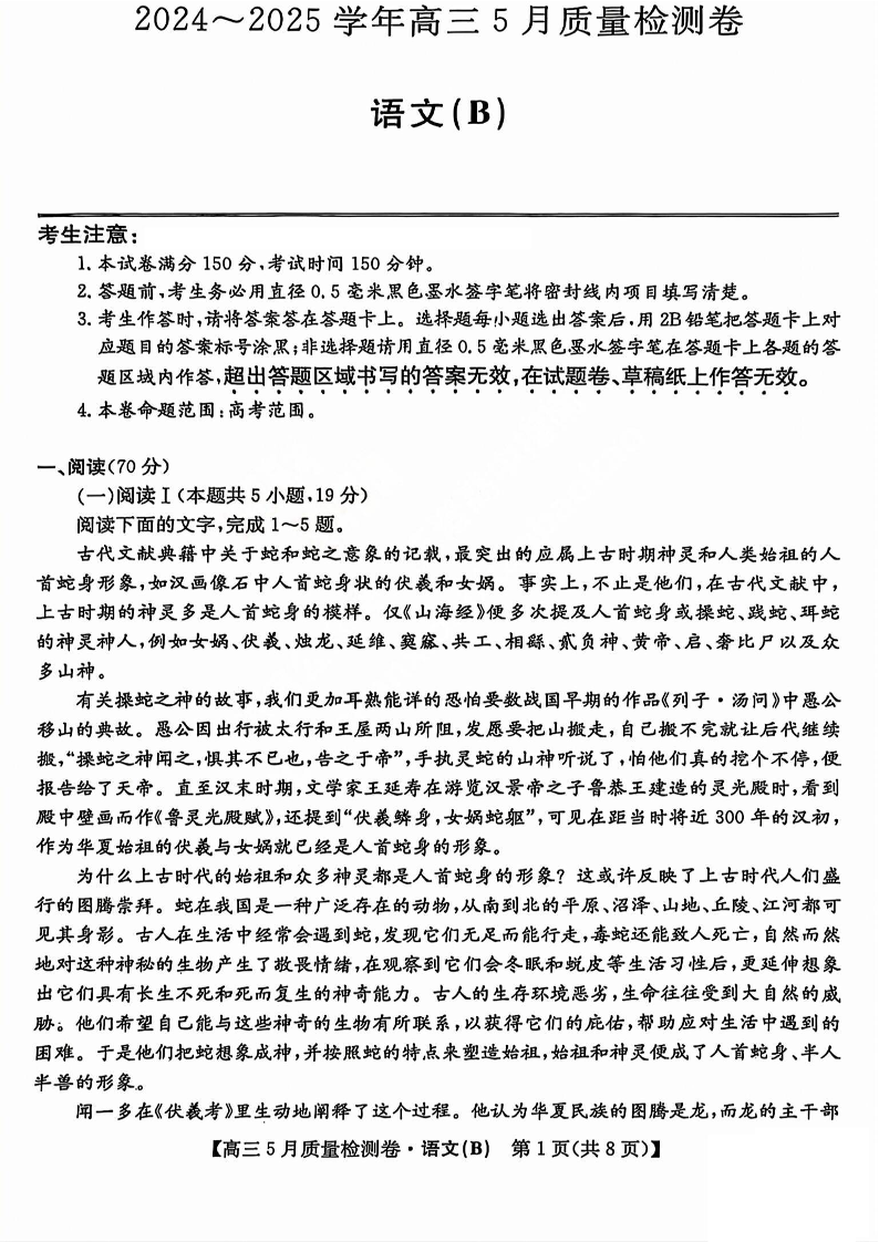 山西省三晋卓越联盟2025届高三5月质量检测语文
