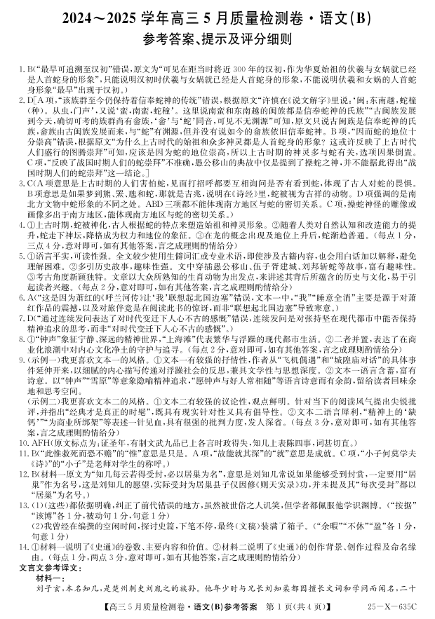 山西省三晋卓越联盟2025届高三5月质量检测语文答案