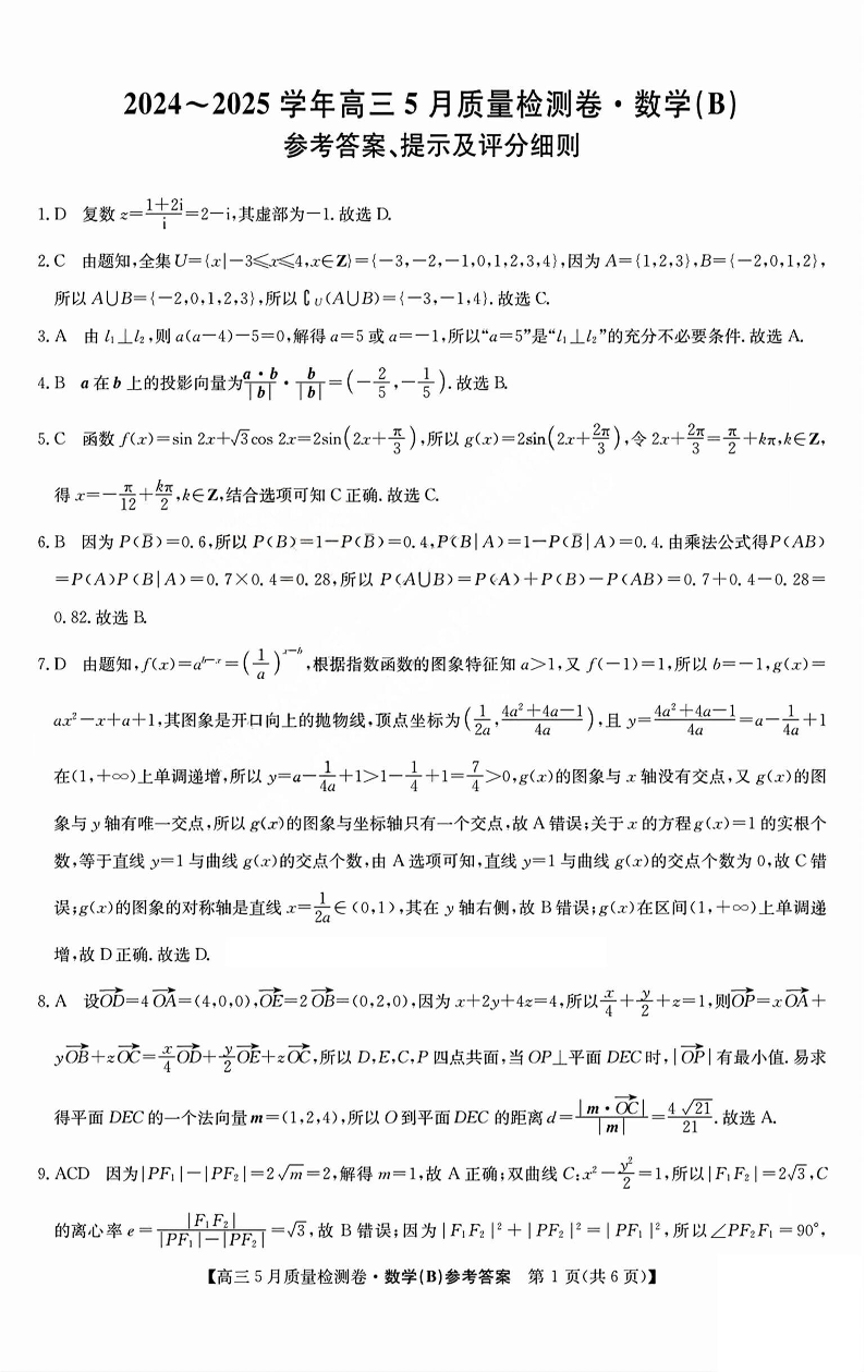 山西省三晋卓越联盟2025届高三5月质量检测数学答案