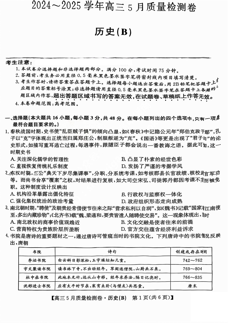 山西省三晋卓越联盟2025届高三5月质量检测历史