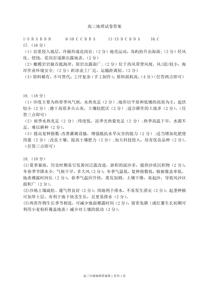 辽宁省五校联考(大连市二十四中学、大连八中、辽宁省实验中学、鞍山一中、东北育才学校)2024届高三上学期期末考试地理答案