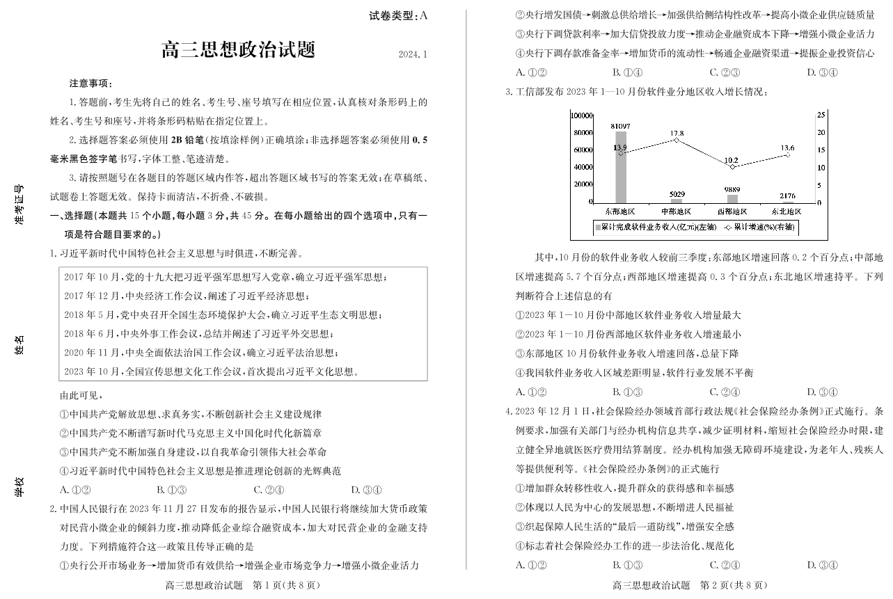 山东省滨州市2024届高三上学期期末考试政治