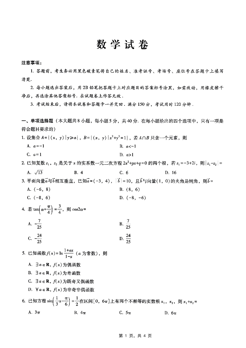 重庆市第八中学校2025届高考适应性月考卷(八)数学