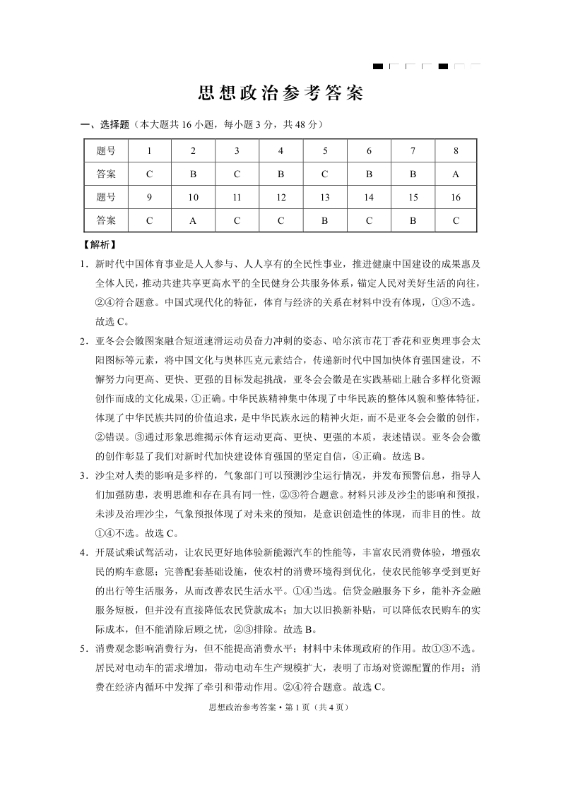 重庆市第八中学校2025届高考适应性月考卷(八)政治答案