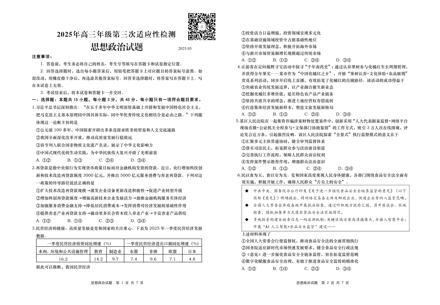 山东省青岛市2024-2025学年下学期5月高三三模考试政治