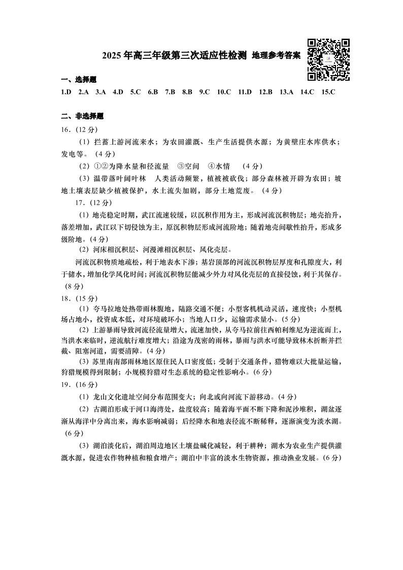 山东省青岛市2024-2025学年下学期5月高三三模考试地理答案