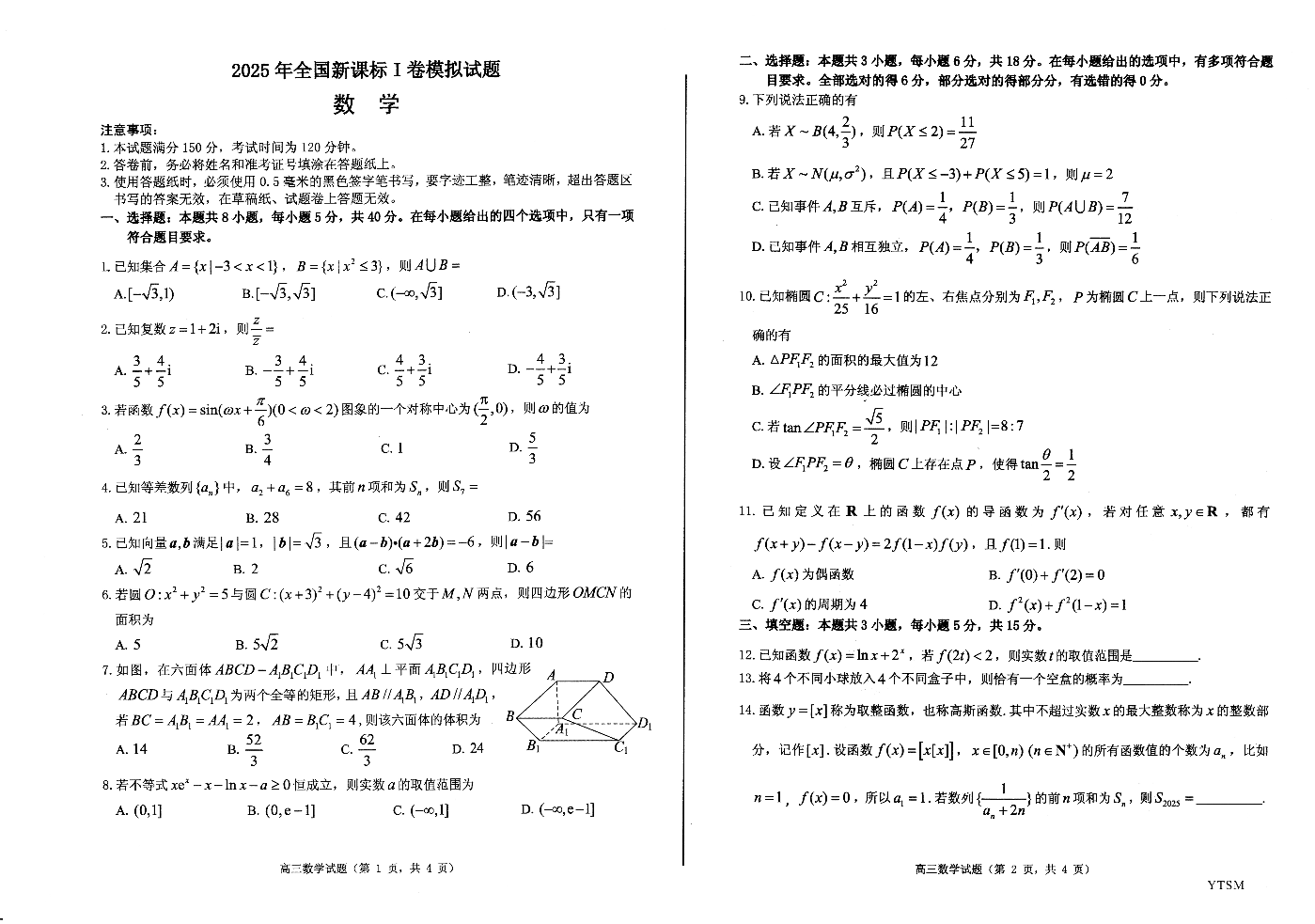 山东省烟台市2024-2025学年下学期5月高三三模考试数学