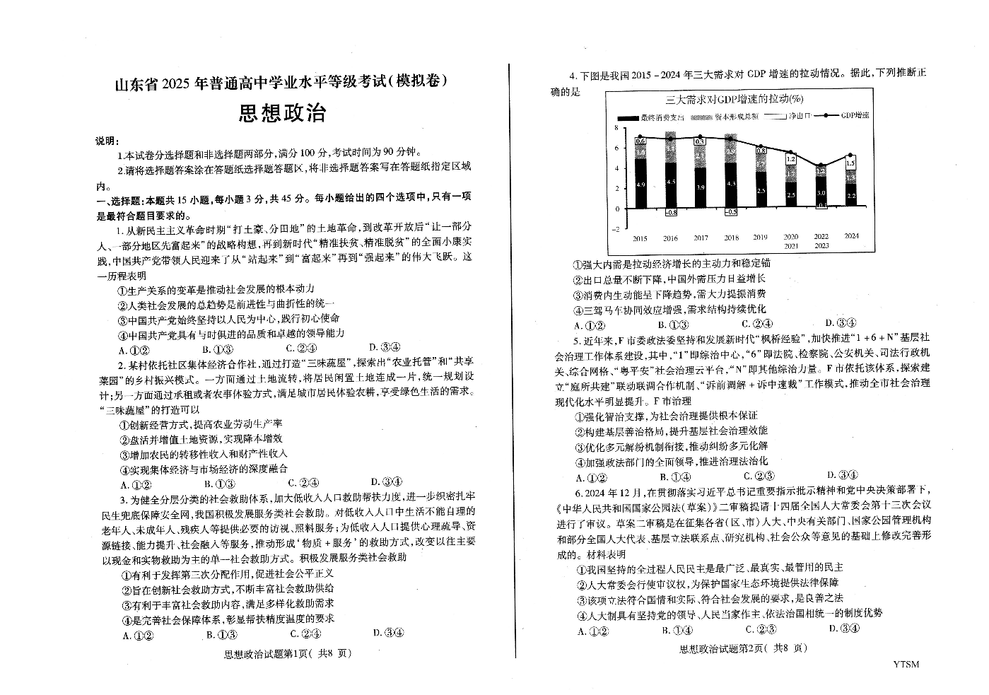 山东省烟台市2024-2025学年下学期5月高三三模考试政治
