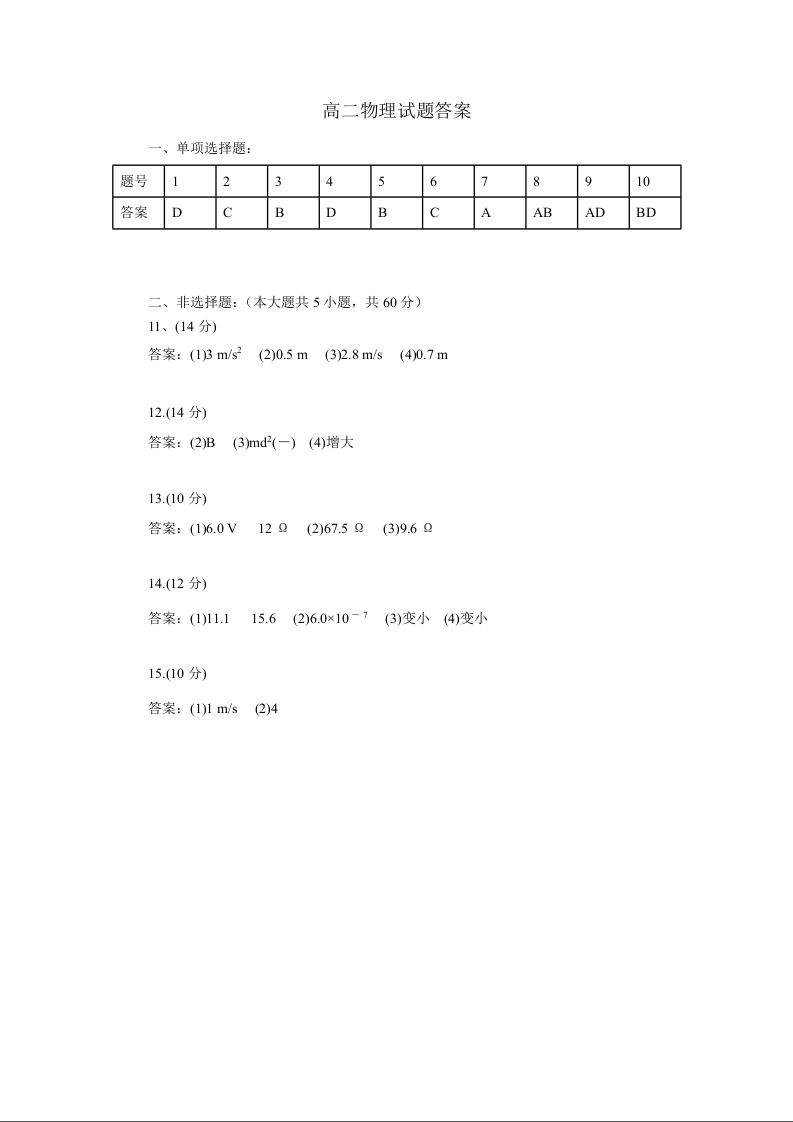 湖北省部分高中协作体联考2024-2025学年下学期5月高二月考物理答案