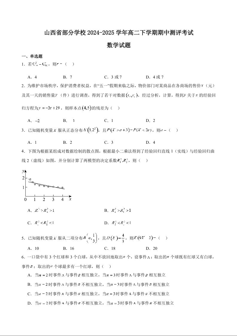 山西省部分学校2024-2025学年下学期高二期中考试数学+答案