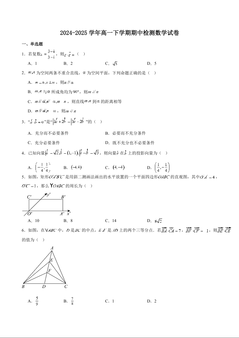 安徽省皖中名校联盟2024-2025学年下学期高一期中考试数学+答案
