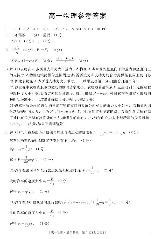 广东省佛山市H7联盟2024-2025学年下学期5月高一月考物理答案