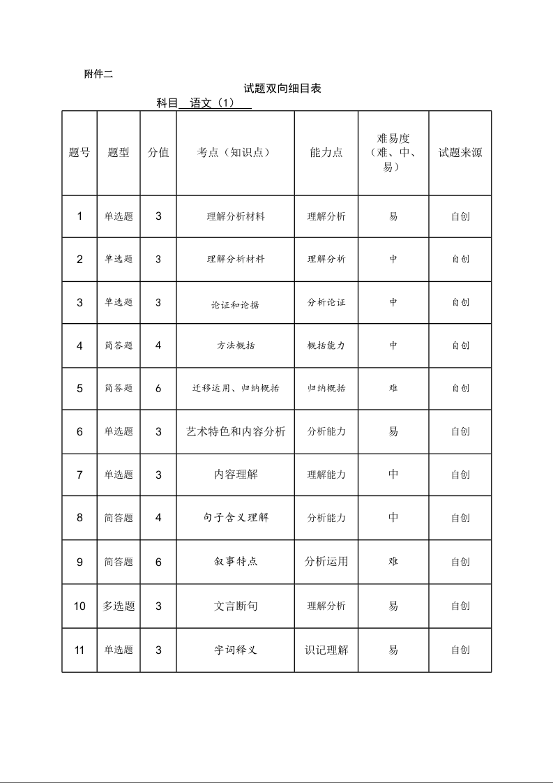 湖北省黄冈中学2025届高三第三次模拟考试语文双向细目表