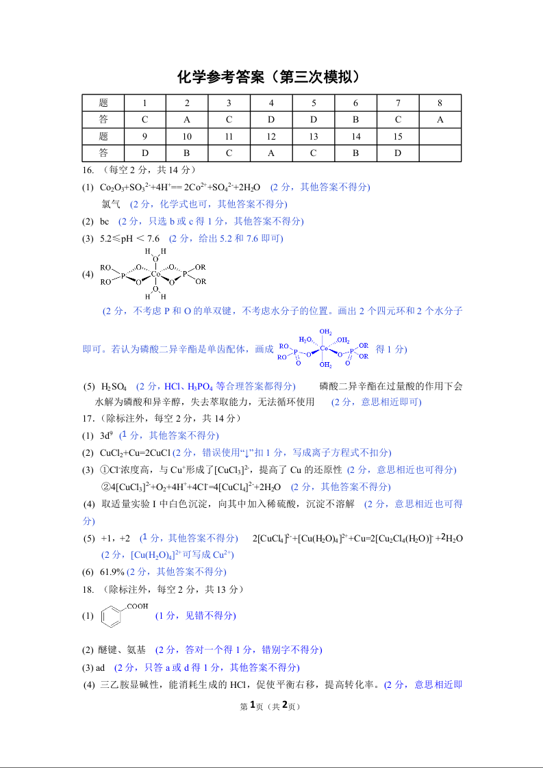 湖北省黄冈中学2025届高三第三次模拟考试化学答案