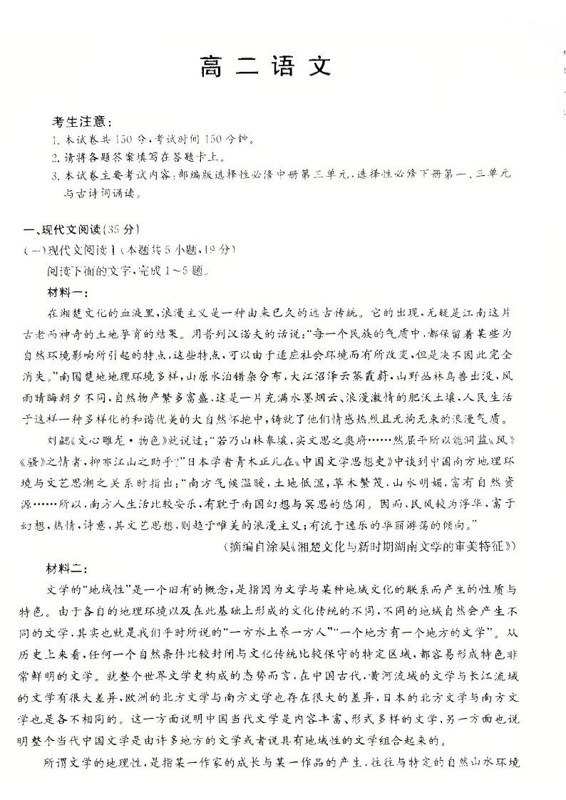 广东省佛山市H7联盟校2024-2025学年下学期5月高二月考语文+答案