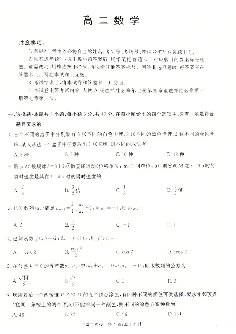 广东省佛山市H7联盟校2024-2025学年下学期5月高二月考数学+答案