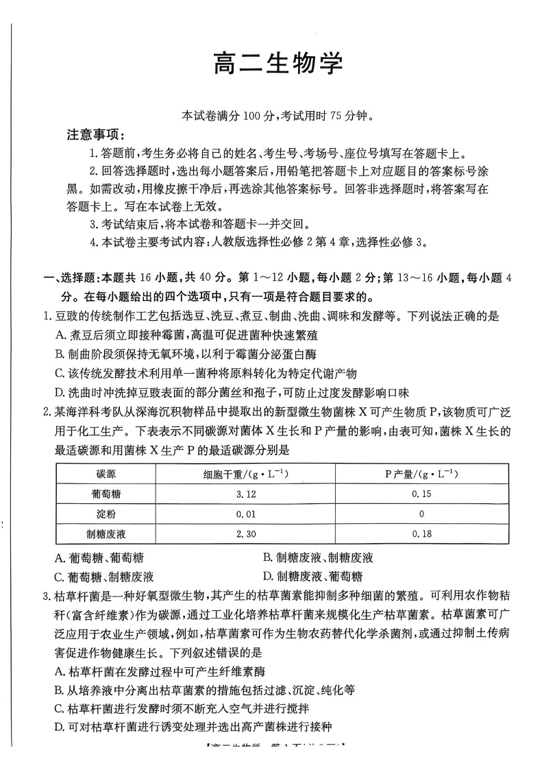 广东省佛山市H7联盟校2024-2025学年下学期5月高二月考生物