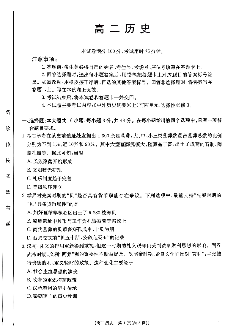 广东省佛山市H7联盟校2024-2025学年下学期5月高二月考历史+答案