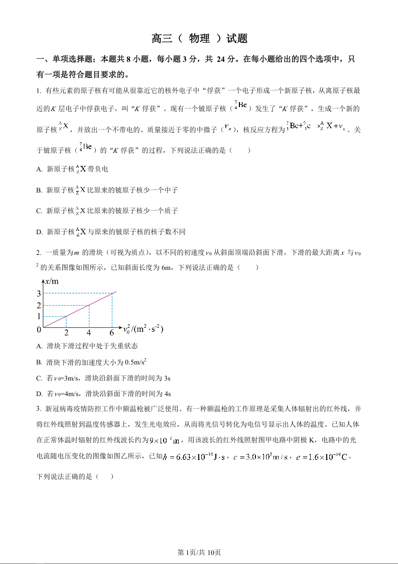 山东省潍坊市2024届昌乐一中学高三模拟预测物理(原卷版)