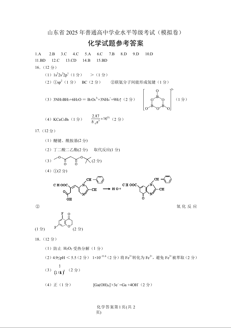 山东省烟台市2024-2025学年下学期5月高三三模考试化学答案