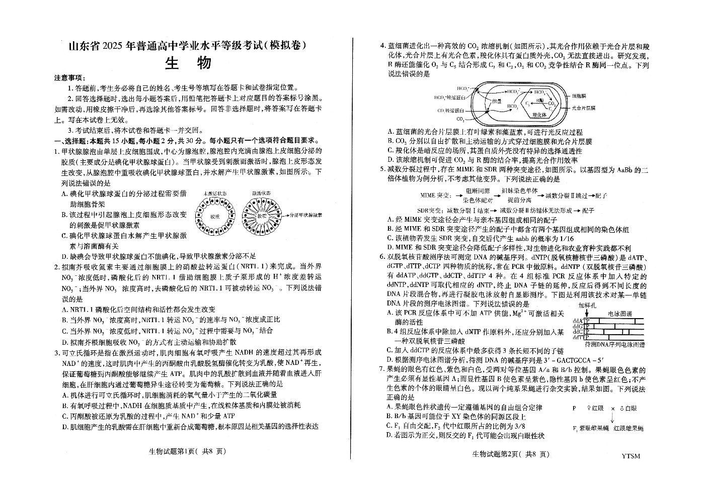 山东省烟台市2024-2025学年下学期5月高三三模考试生物
