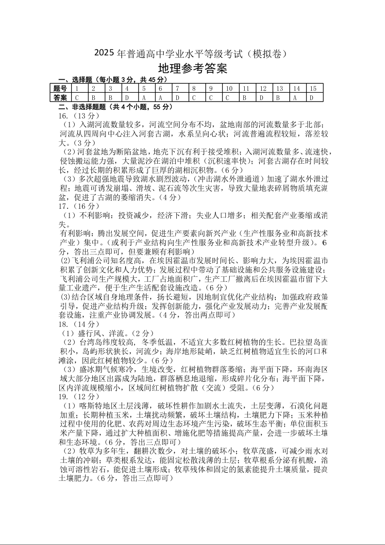 山东省烟台市2024-2025学年下学期5月高三三模考试地理答案